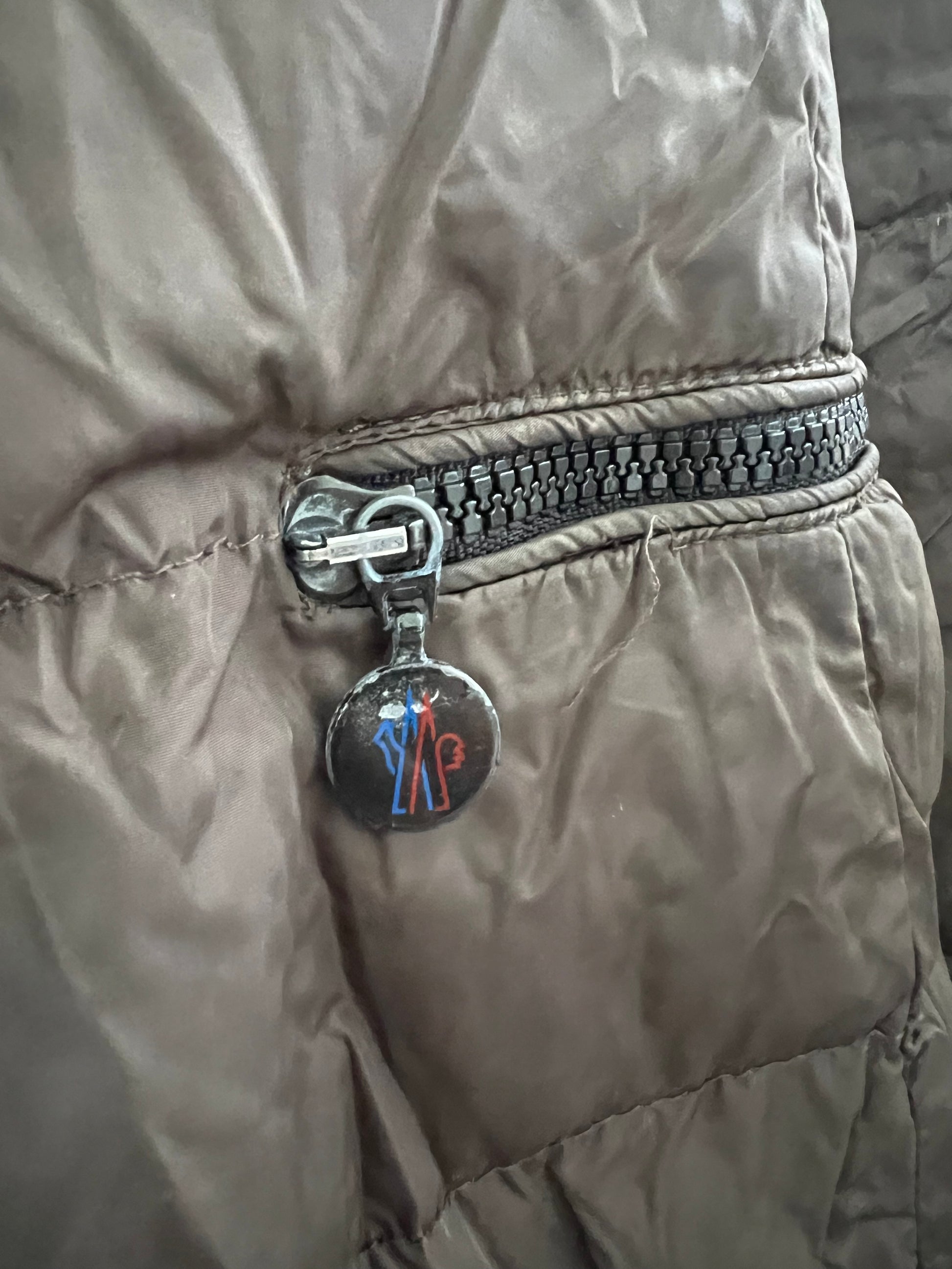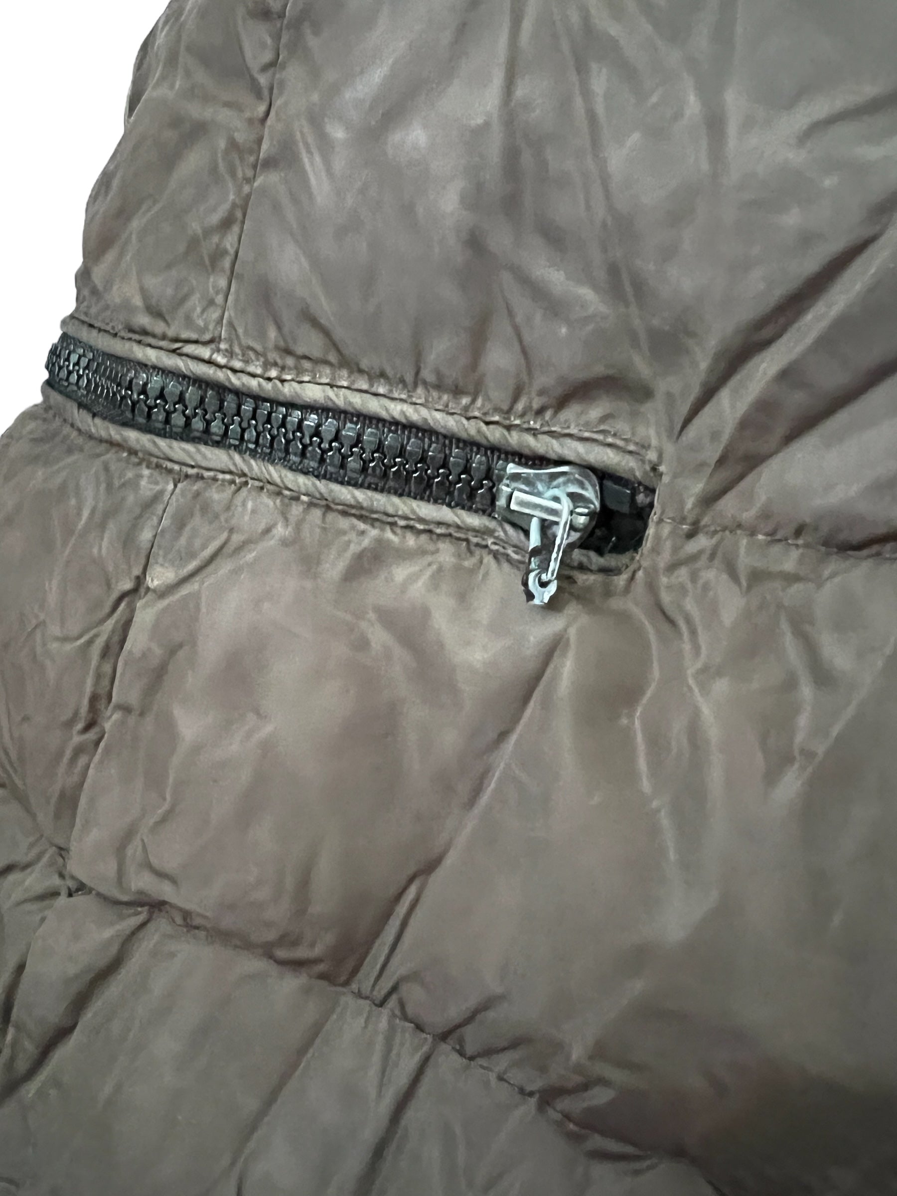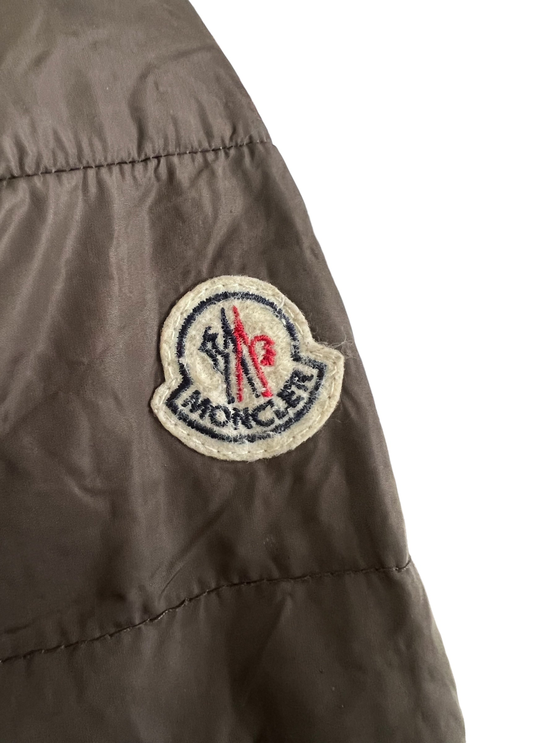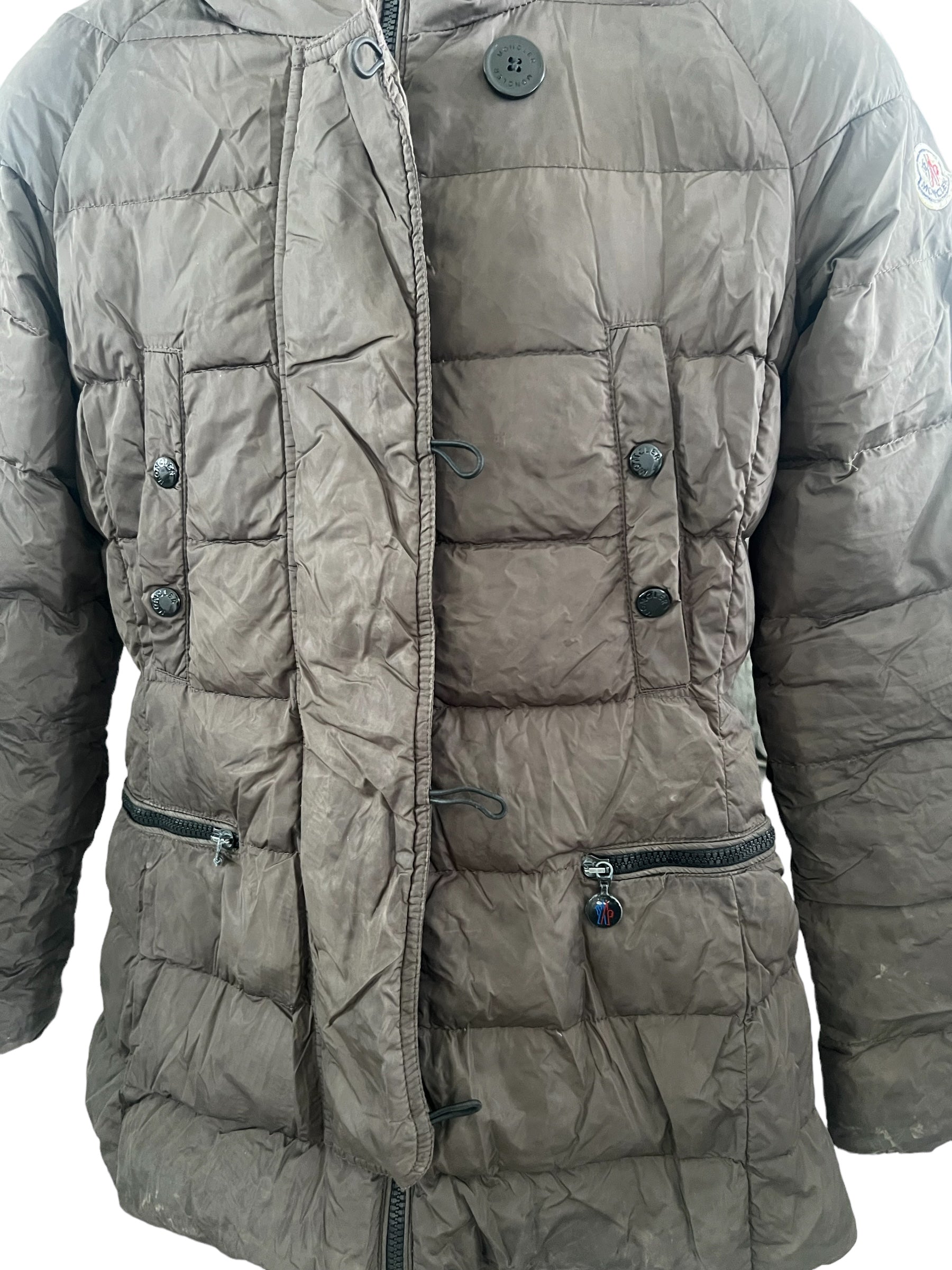 Made from high-quality materials, this stylish Moncler Khaki Green Fur Hooded Jacket is built to last. With a size 3 that fits like a women's large, it offers both style and comfort. The luxurious fur hood adds a touch of elegance while keeping you warm during colder weather. Its durable design and functioning zips and buttons make it perfect for everyday wear. Although slightly faded and with minor marks as well as a zip tag missing, it maintains a 6/10 condition, showcasing its longevity and versatility with none of these factors effecting the use of the jacket.