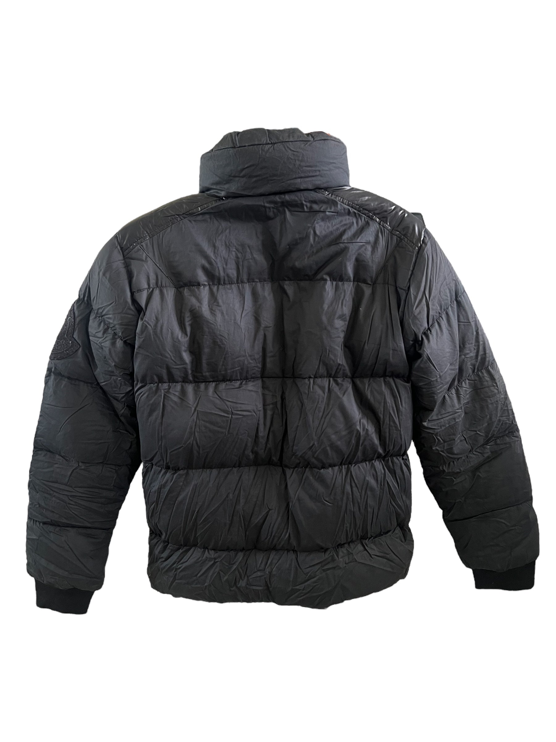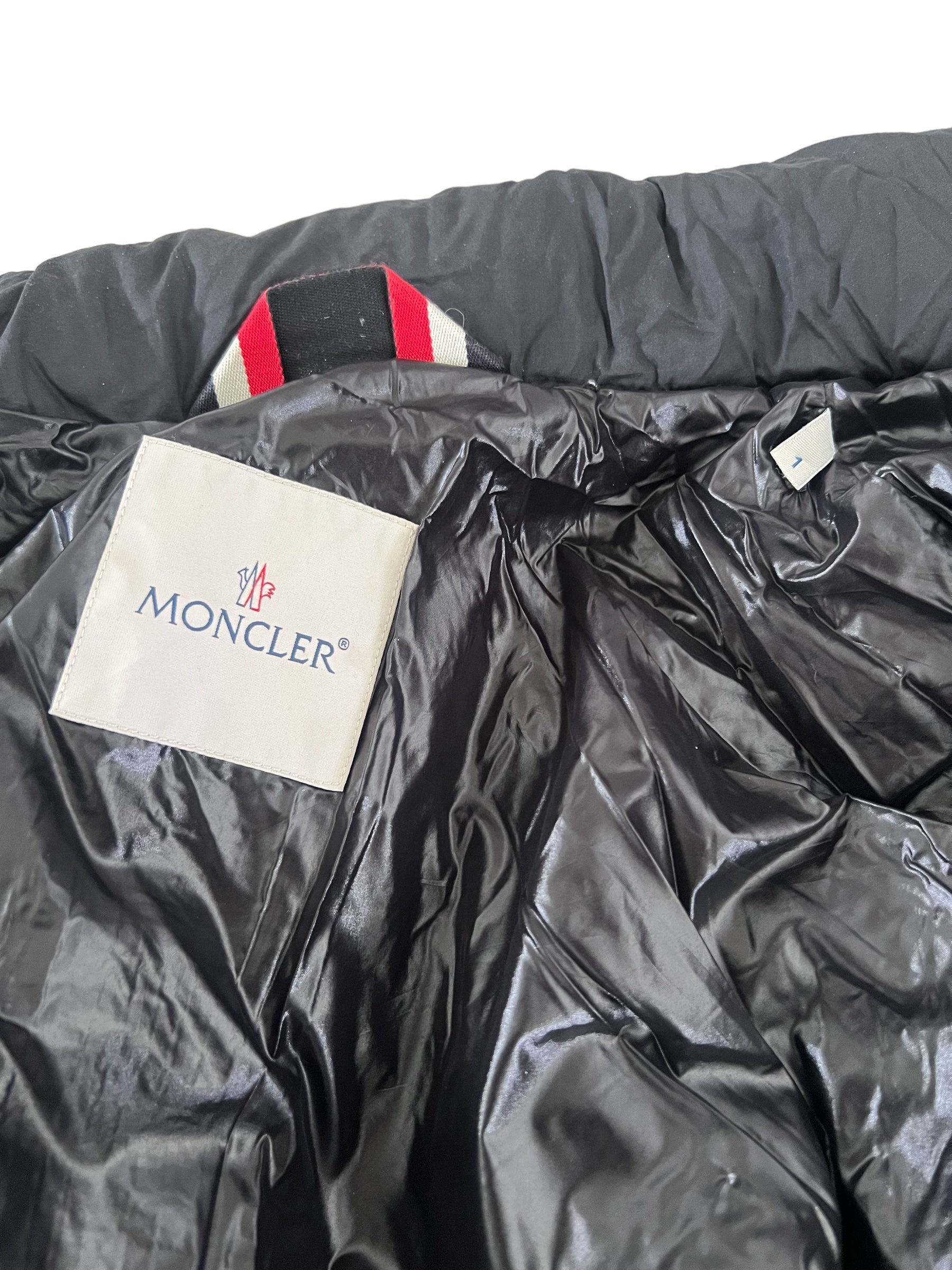 Discover the sleek and stylish Moncler Black Logo Jacket. With all zips and buttons in working order, this jacket offers both practicality and fashion. The size 1 is equivalent to a medium, providing a comfortable fit. Despite a small tear on the inside, this jacket remains in excellent 7.5/10 condition. Upgrade your wardrobe with this must-have piece.