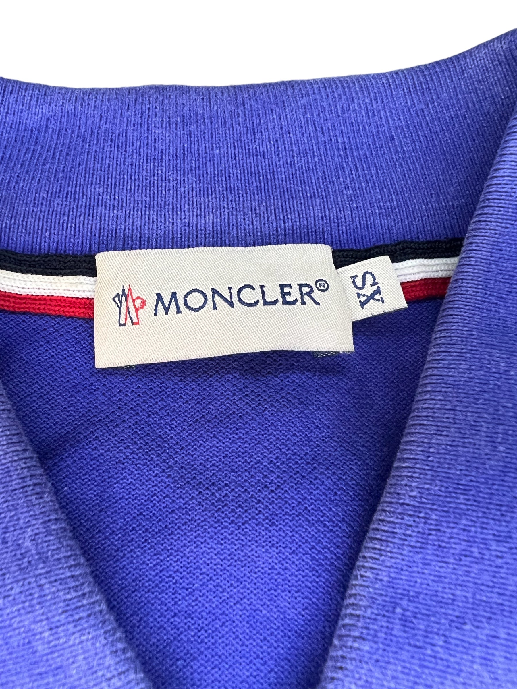 This navy blue Moncler polo shirt, size XS, is a durable and stylish addition to any wardrobe. With an 8.5/10 condition, this shirt has been worn but remains in brilliant condition. Add a touch of luxury and sophistication to your attire with this versatile piece.