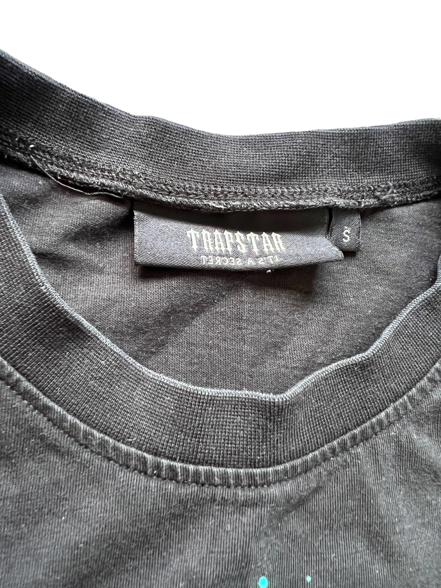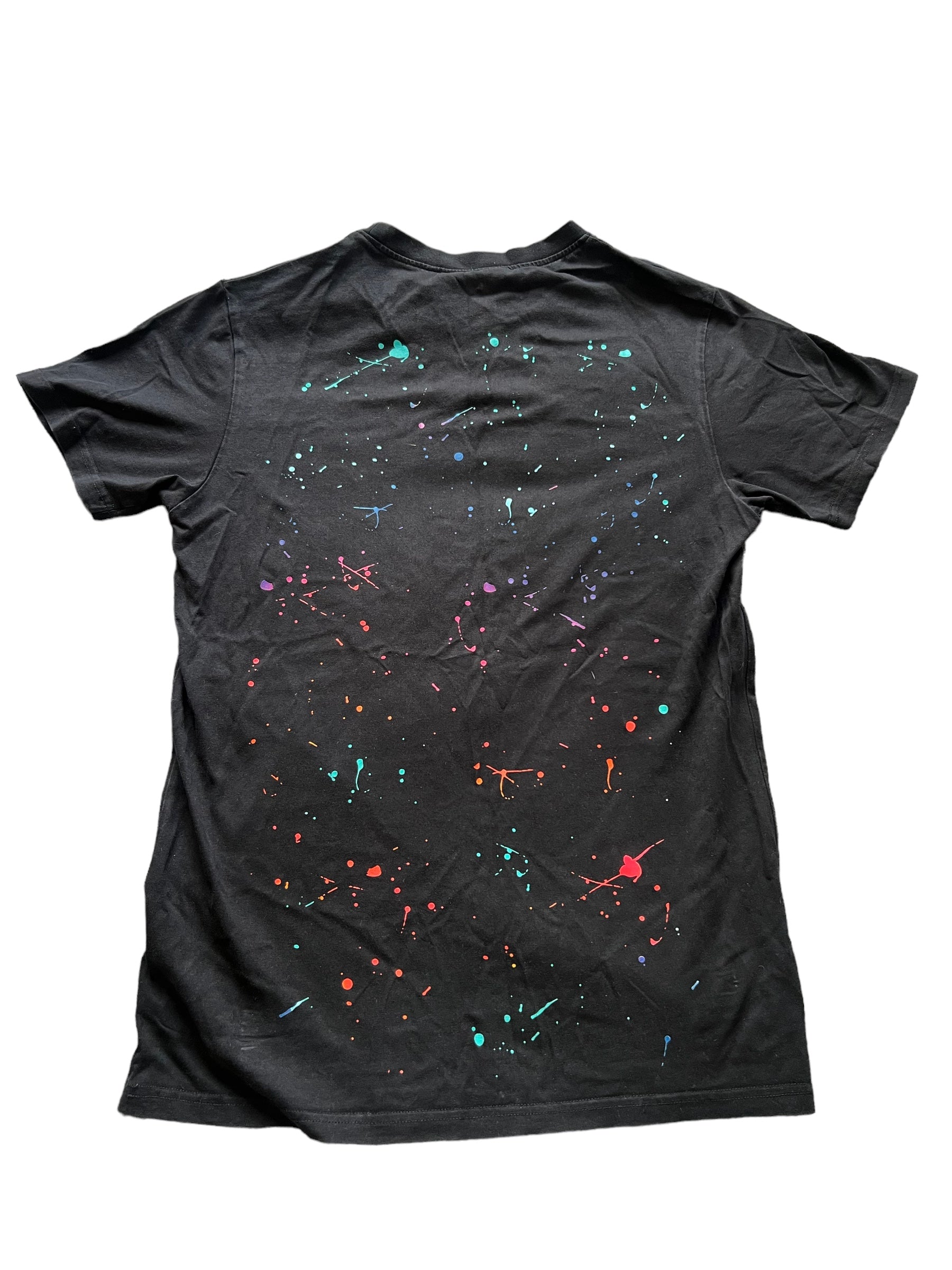 The Trapstar Paint Splat T-shirt is a black t-shirt with a unique, multi-colored paint splatter design. Crafted with high-quality materials, this rare find from a previous season is in excellent condition and ready for plenty more wear. Available in size small, this t-shirt is a must-have for any fashion-forward individual.