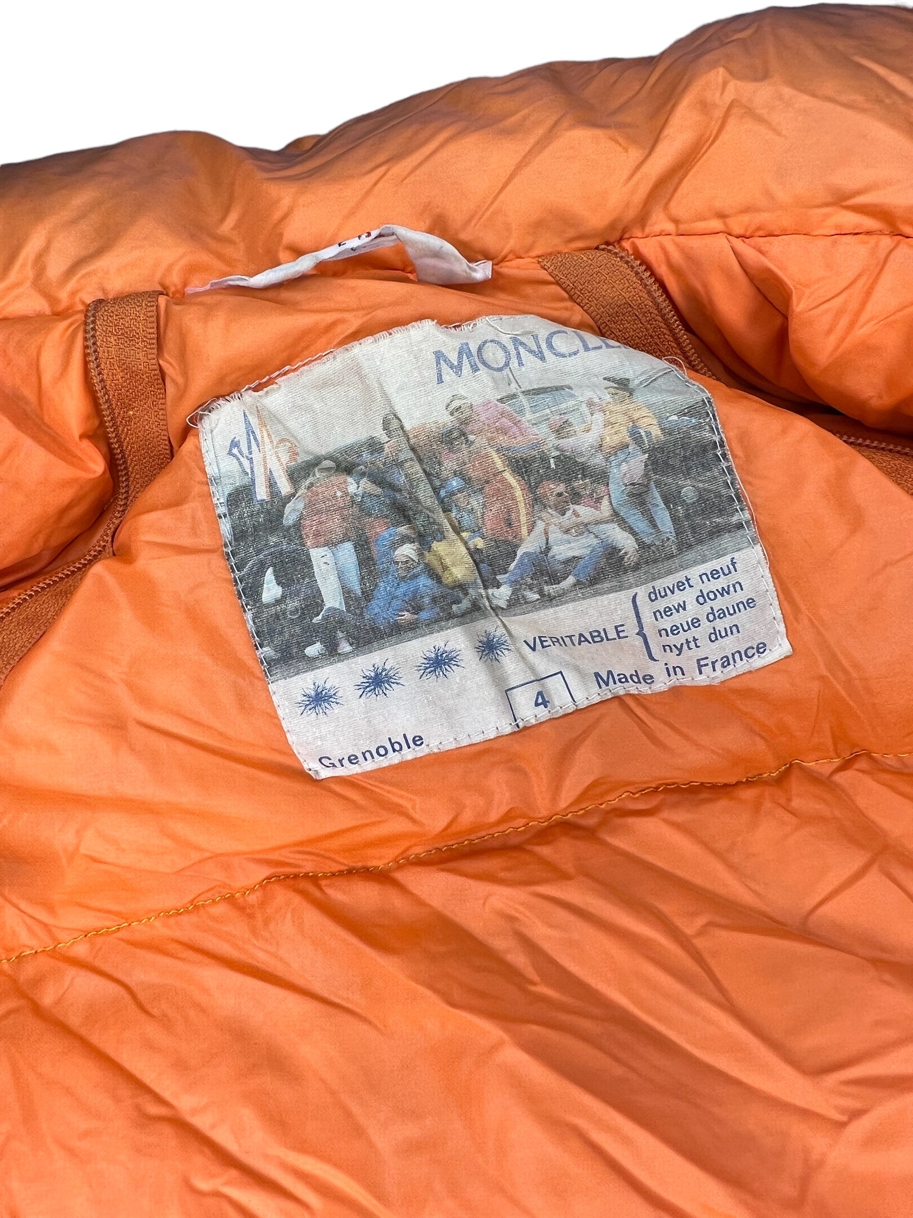 Get the ultimate vintage look with the Moncler Grenoble 80s Gilet. This vibrant orange gilet features a few scuffs and age related marks, but is in brilliant overall condition for its age. With a size 4, equivalent to XL, it's a fantastic vintage piece that will add a touch of personality to any outfit.